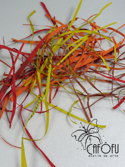 3- cortar essas tiras pintadas em tirinhas bem fininhas com mais ou menos 2 mm de largura.